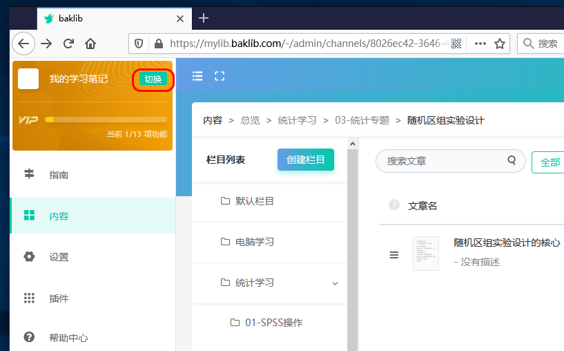 下图界面左上方的切换按钮可以切换到不同的笔记本(站点)