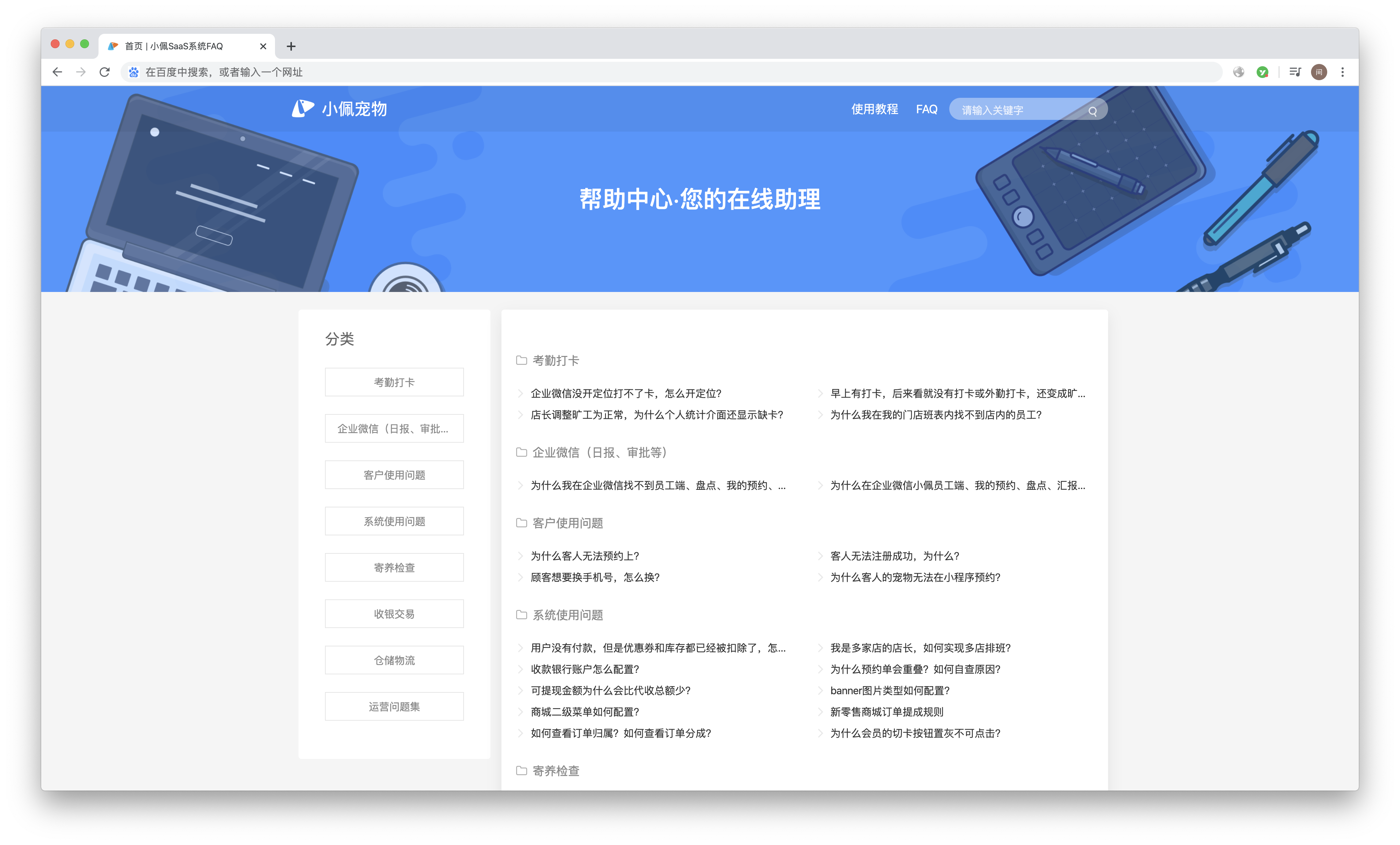 目前帮助中心页面展示很乱,条理不清晰,用户查询有难度;