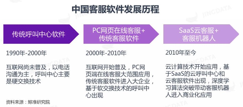 想象在互联网还未普及的 20 年前,客服服务主要还是以人工连线的方式,在近近十年,在线客服才开始出现,直到 2010 年左右,基于 SaaS 的云呼叫中心和云客服软件才开始出现