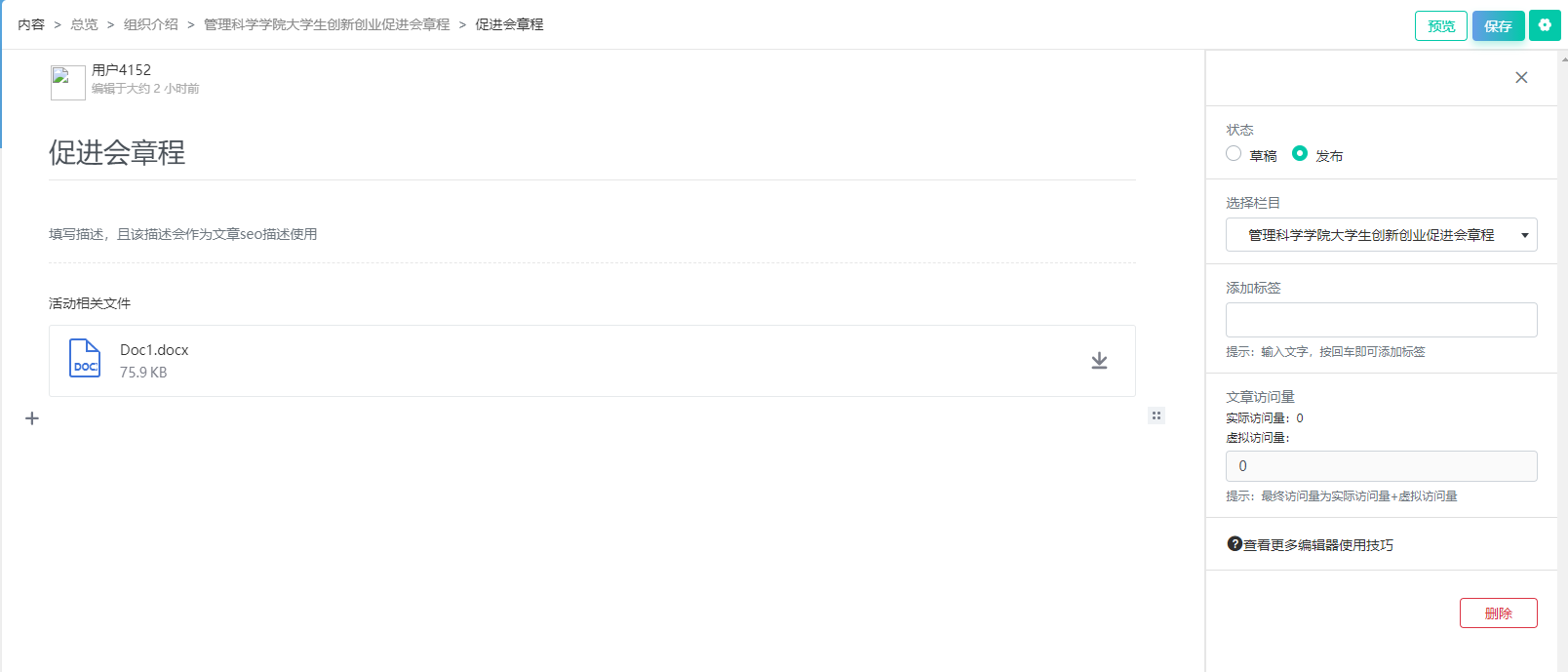 文章随时随地编写修改,同时可以及时保存发布,编写一篇新通知时可完整保留没有改动的内容只修改变动的相关信息,实现一份通知能重用的重用,极大降低工作量