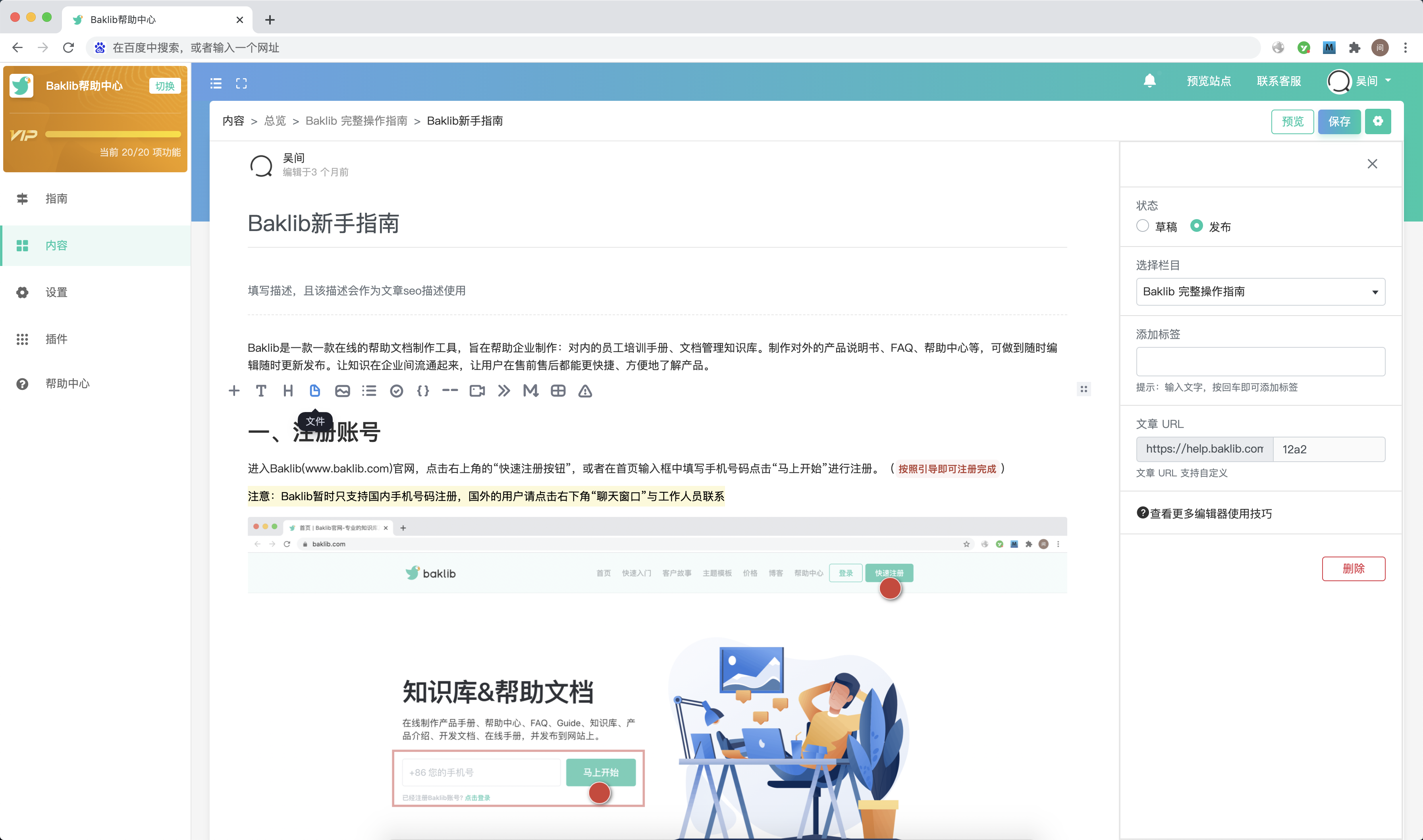 产品体验链接:https://www.baklib.com/
