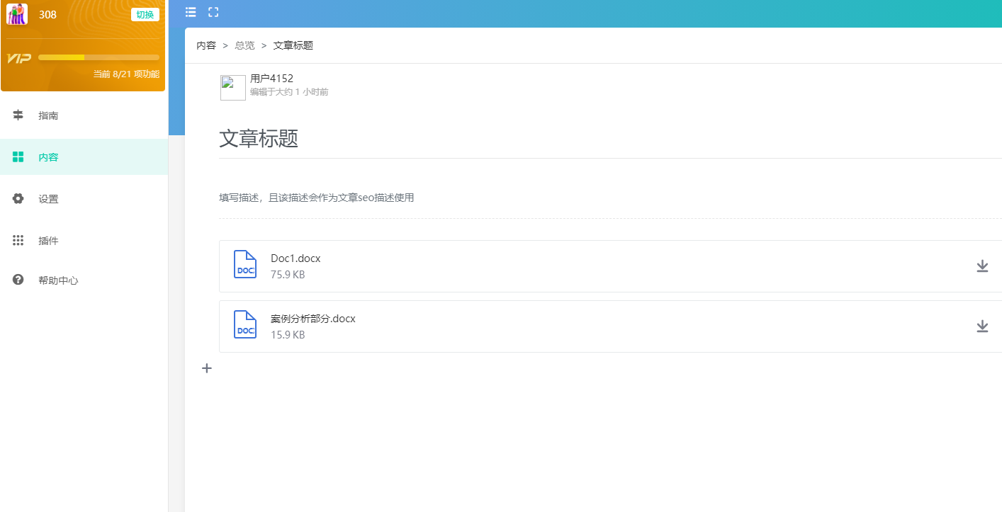 3. 官方提供多种插件功能,包括:网页导航、搜索关键词统计、访客统计、独立域名等等,方便进行帮助中心的运维管理;
