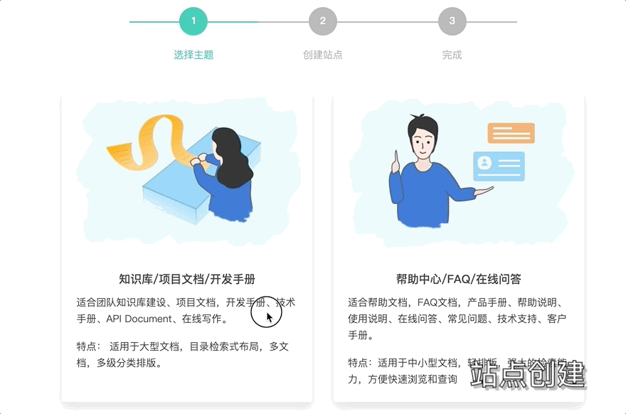 第二步:新建站点 - 选择 “帮助中心”。