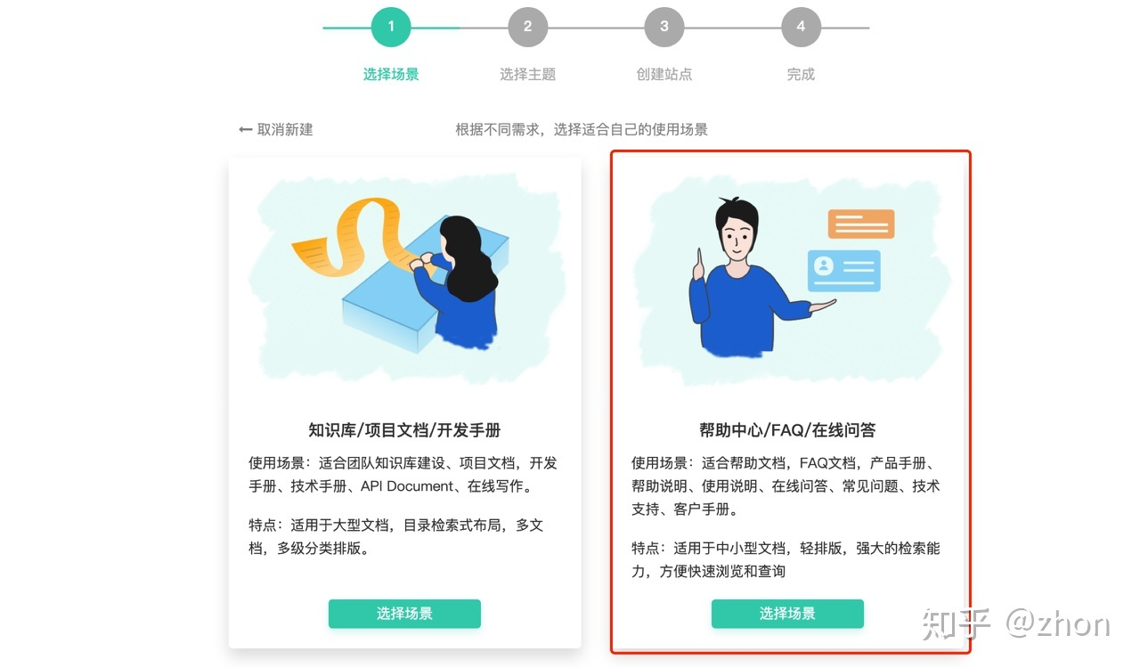 注册 Baklib 账号登陆,开始创建站点,选择创建的场景,这里选择帮助中心 / FAQ / 在线问答制作