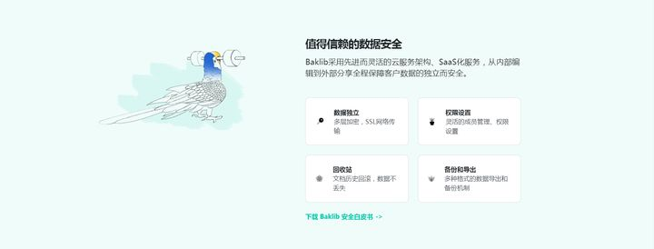 baklib 支持数据的备份和多种格式的导出,采用 SSO 单点登录与 SSL 加密技术,从内部编辑到外部分享全程保障客户数据的独立而安全,为你的知识、文档保驾护航。