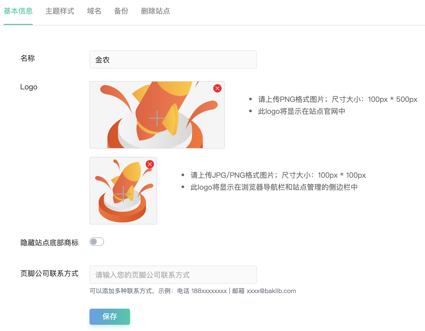 添加帮助中心站点名称,logo,企业联系方式。