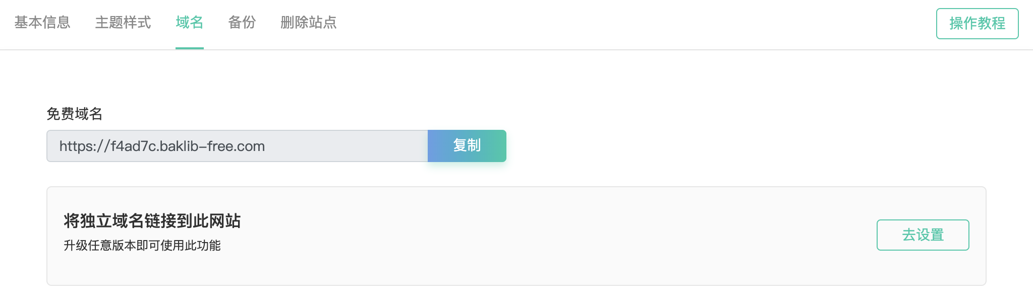 当您拥有自己的域名之后,可以在这里把域名绑定到 Baklib 的二级域名站点,填上备案号,就能够拥有一个自己品牌网站。