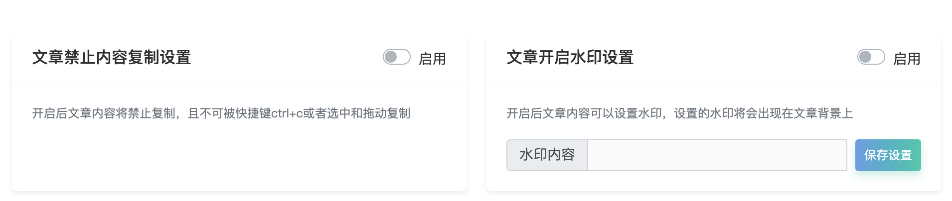开通内容保护,可以禁止内容复制和添加水印等。
